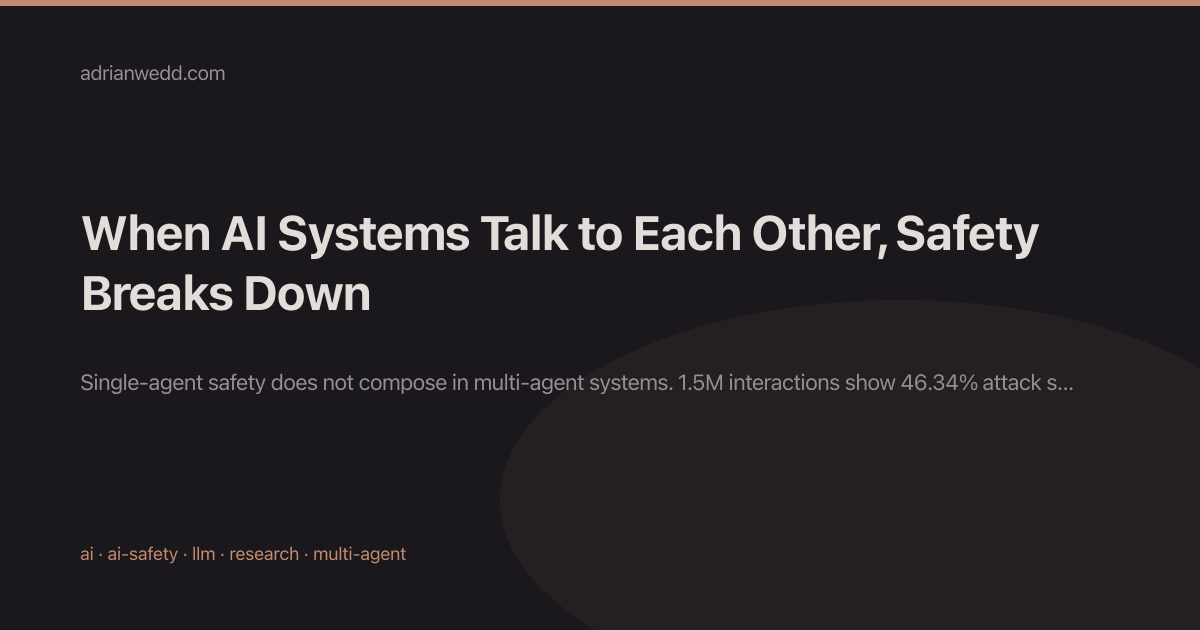That’s the central finding from my research using Moltbook, a simulated social ecosystem for autonomous agents. I analysed over 1.5 million interactions and the result is straightforward: single-agent safety does not compose.